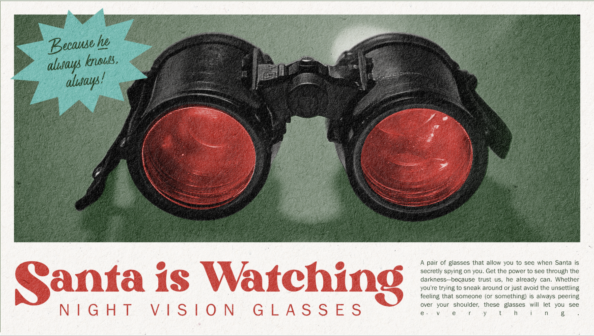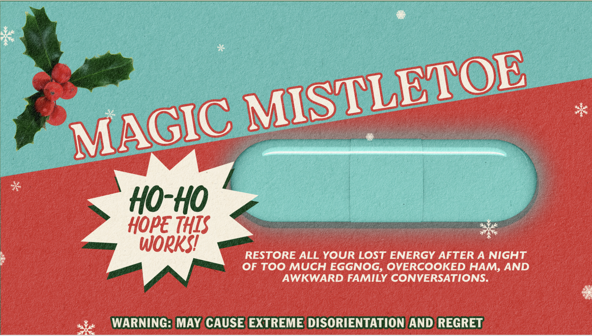 Through the 4 hour Video we had playful “Ads” for products that help you get through the Holiday Season.